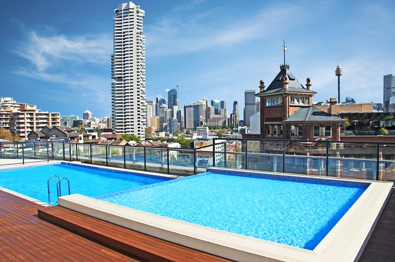 A pool perched on a rooftop overlooking picturesque darlinghurst and the stunning sydney Harbour Bridge is Perfect Pool glaze’s latest achievement.