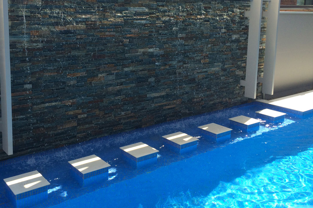 Built level with the entertainment area, the new pool features two multi-coloured LED lights, glass mosaic tiles and Astral filtration equipment.