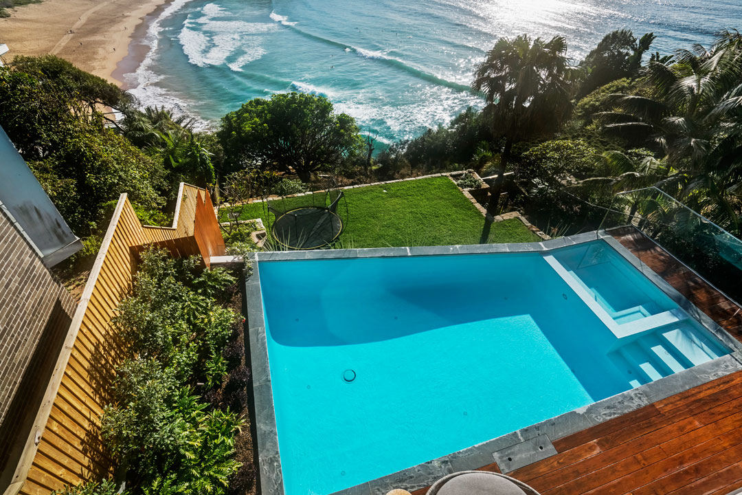 Built on a severely sloping block, this breathtaking pool and spa combination offers striking views and family-friendly relaxation. Renowned for its hands-on management and quality workmanship, TradeMark Pools constructed the outdoor area, while Watershed Design designed the pool.